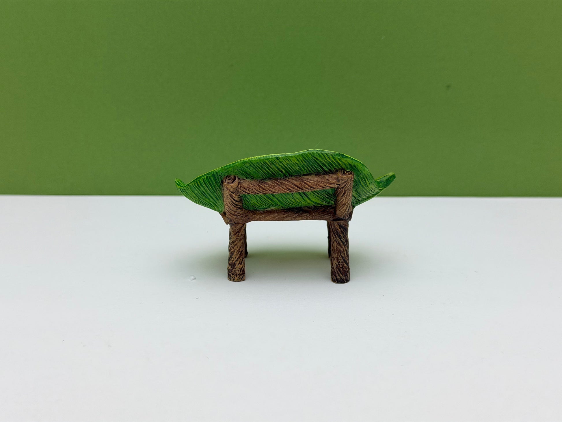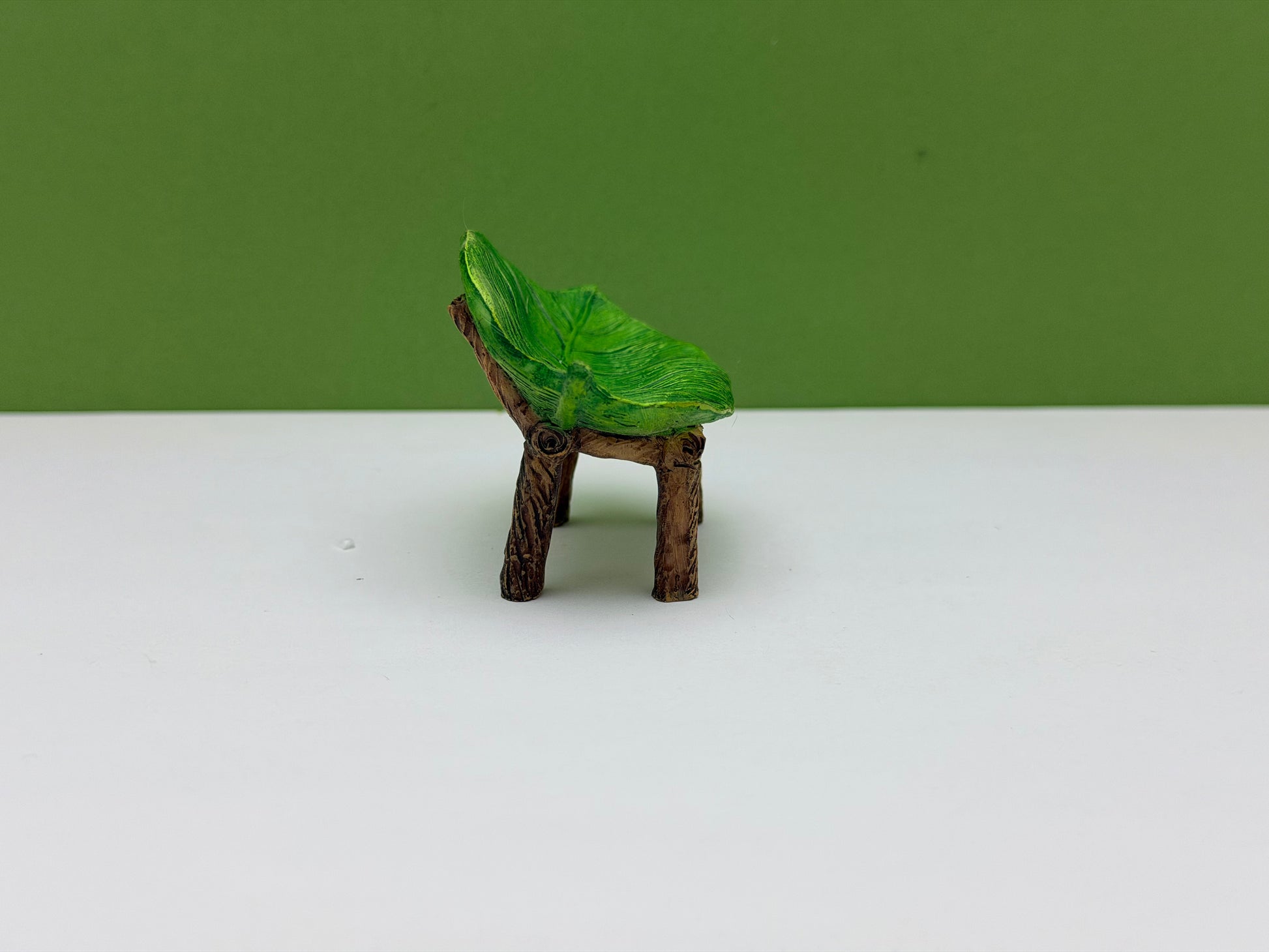 This leaf bench is the perfect place for fairies to take a break and relax in your fairy garden!