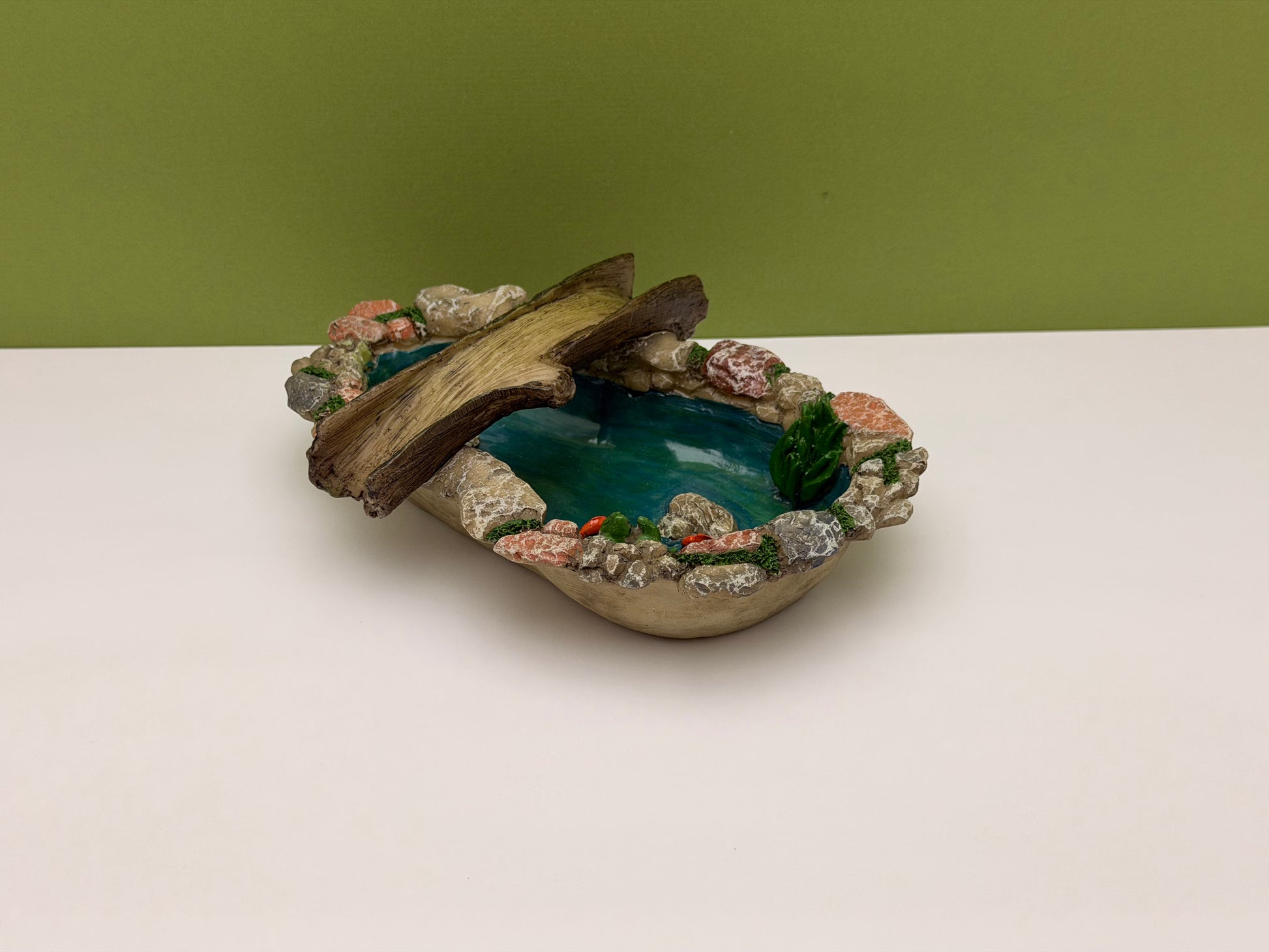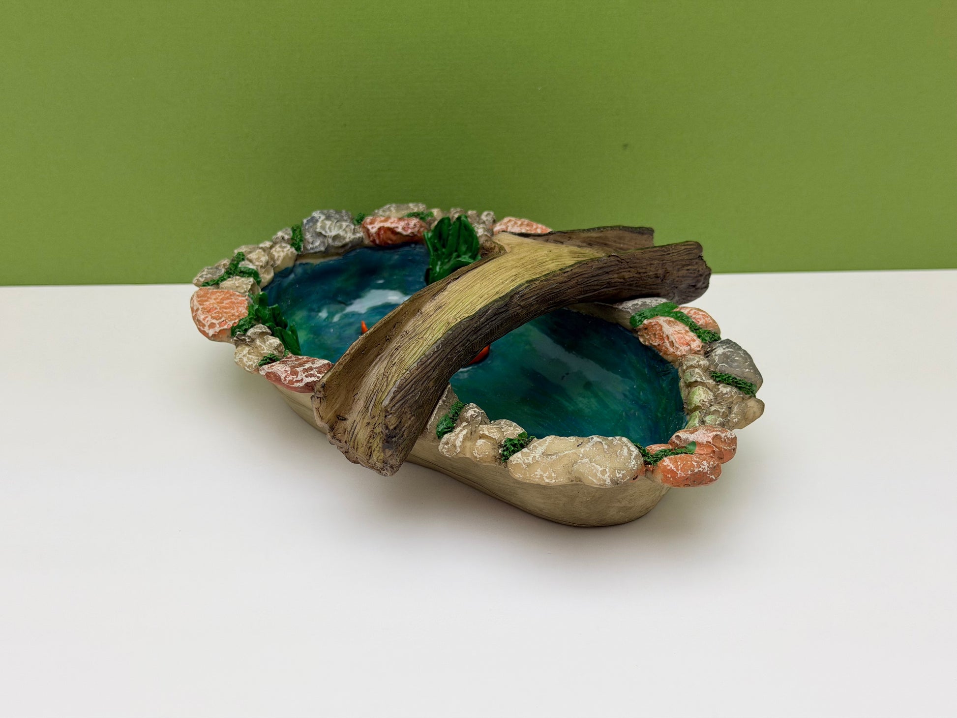 This tree bridge pond is the perfect centerpiece to any fairy garden!
